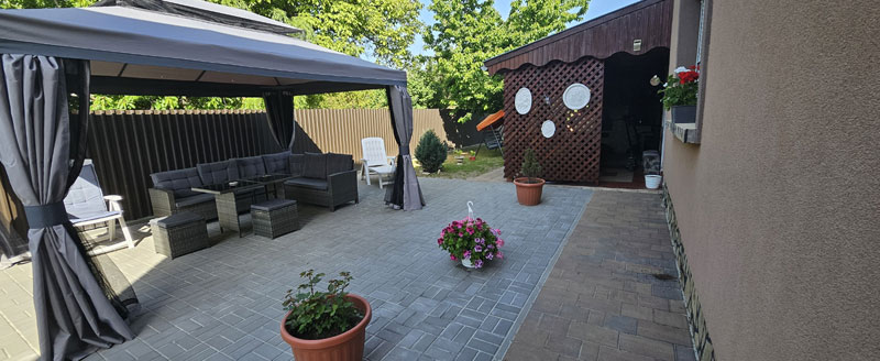Udvarban grillezési/főzési lehetőség, fedett teraszunkon, családi ebéd, szórakozási lehetőség.
